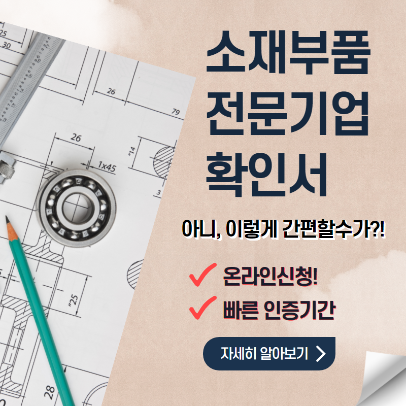 20일 이내의 빠른 기업인증! 소재 부품 전문기업 확인서