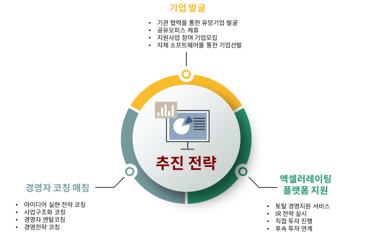 자체 경영평가 시스템을 통한 탁월한 기업 발굴 역량, 경영자코치를 활용한 신뢰 기반 기업 성장모델, 나눔상생플랫폼과 함께 투자하세요.